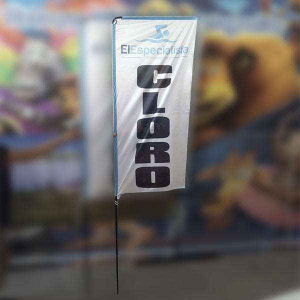 Este tipo de Fly Banner asegura un perfecto comportamiento frente al viento y posee un gran atractivo visual.